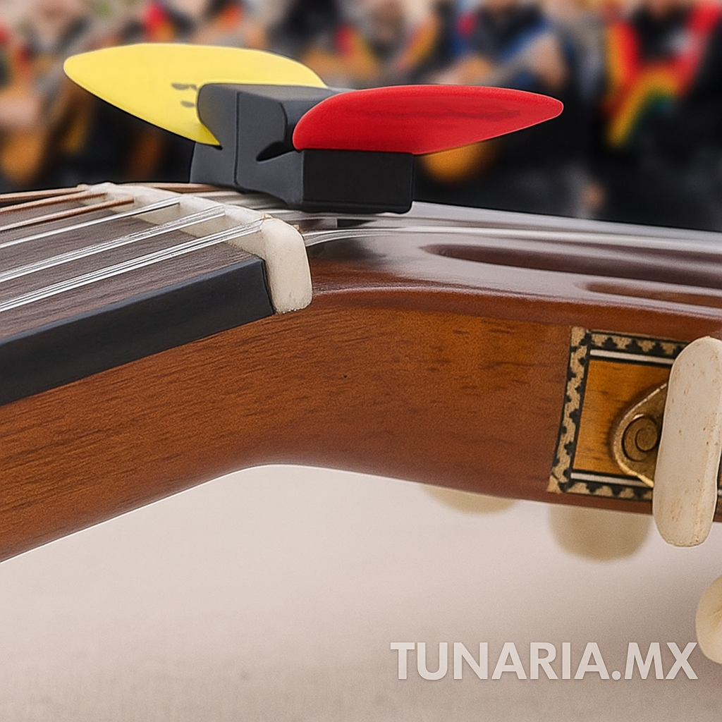No requiere pegamento ni tornillos. Solo deslízalo sobre tu correa y comienza a tocar. Ideal para guitarras, bandurrias y laudes.