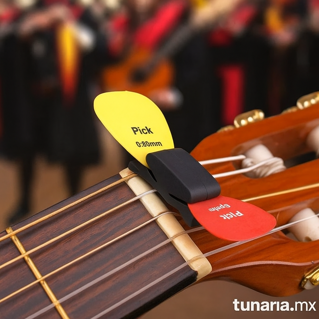 Mantén tus púas seguras y al alcance mientras tocas o ensayas