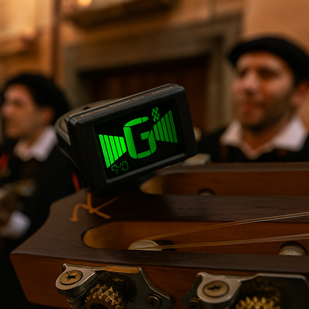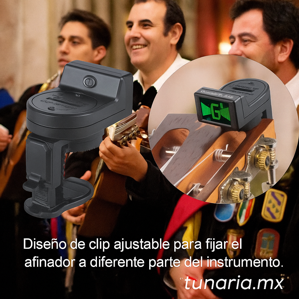Mantén tu instrumento afinado, con este afinador clip-on con pantalla verde que facilita la lectura en cualquier ambiente. A diferencia del afinador de pinza, este es ajustable y queda fijo en el mástil de forma discreta, ocultándolo del público y tus compañeros (asi no lo pierdes).